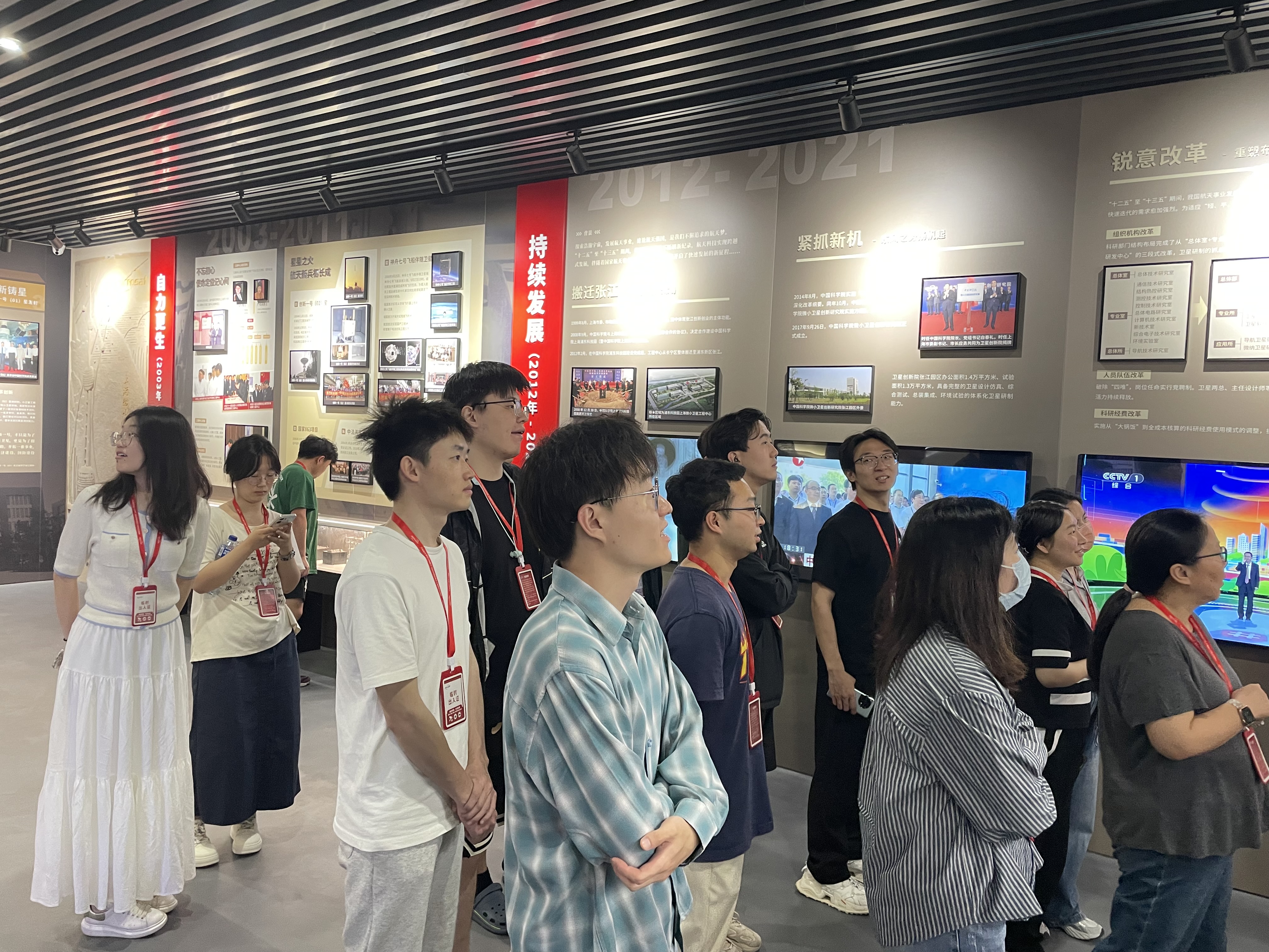 師生們首先參觀了衛(wèi)星創(chuàng)新院航天衛(wèi)星科普教育基地(院史館),通過圖文展板、衛(wèi)星模型和發(fā)射模擬視頻等形式,系統(tǒng)地了解了研究院20年來(lái)的發(fā)展歷程及其在北斗導(dǎo)航、量子通信、暗物質(zhì)探測(cè)等領(lǐng)域取得的代表性科研成果。隨后,師生們進(jìn)入衛(wèi)星研發(fā)總裝廠房,近距離接觸到包括“天宮二號(hào)”伴星、“悟空號(hào)”等衛(wèi)星模型,深刻體會(huì)到航天工作者們身上的“三無(wú)精神”(無(wú)名英雄、無(wú)私奉獻(xiàn)、無(wú)上光榮)與家國(guó)情懷。通過此次主題教育活動(dòng),師生們不僅收獲了豐富的航天知識(shí),更體會(huì)到了科學(xué)家們“特別能吃苦、特別能戰(zhàn)斗、特別能攻關(guān)、特別能奉獻(xiàn)”的精神。