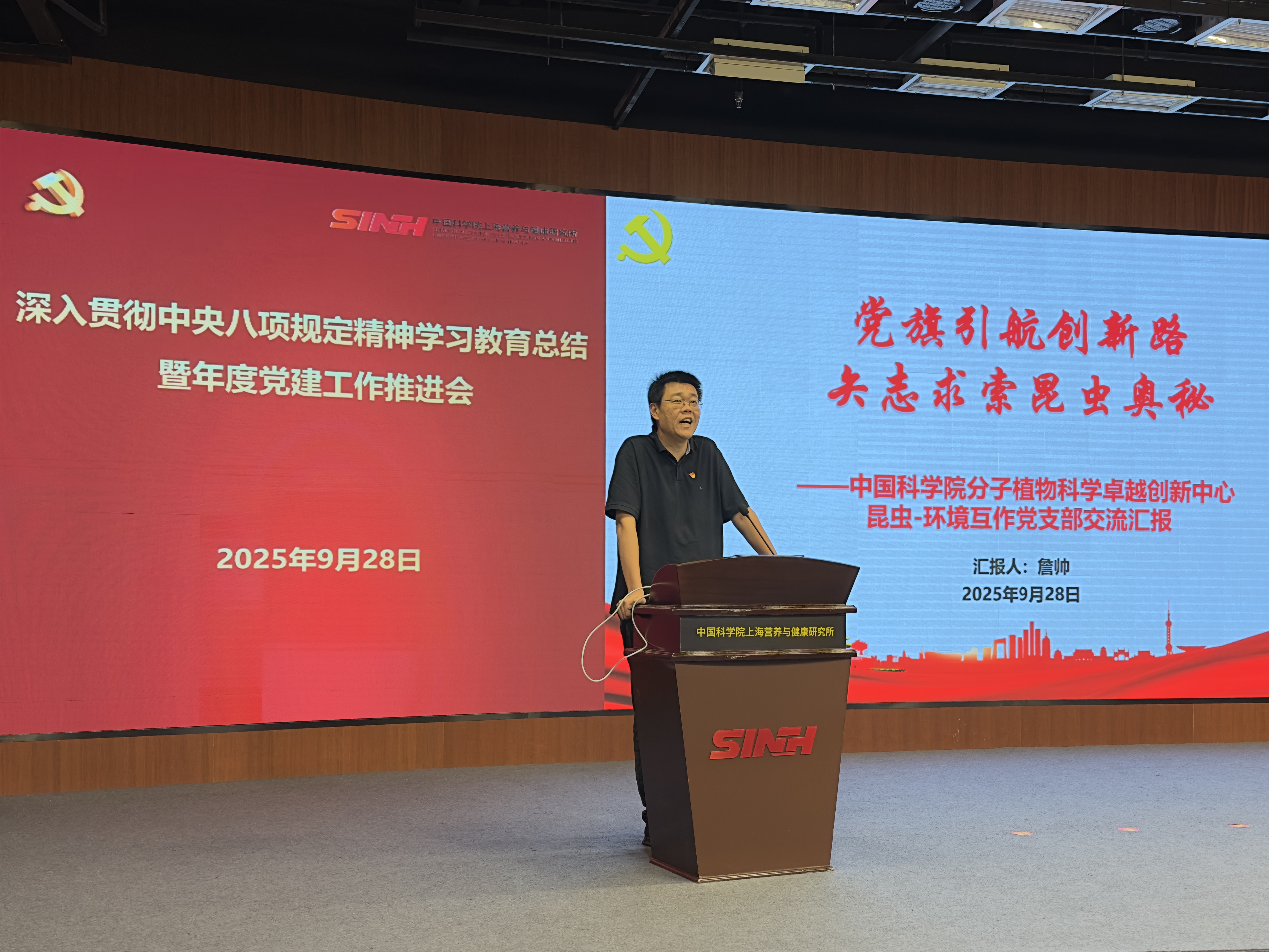 會(huì)上,研究所信息中心副主任徐萍研究館員聚焦“十五五”規(guī)劃作了題為“從戰(zhàn)略情報(bào)角度淺析生命科學(xué)領(lǐng)域發(fā)展趨勢(shì)”的報(bào)告;中國(guó)科學(xué)院分子植物科學(xué)卓越創(chuàng)新中心支部書記詹帥研究員受邀就如何打造“四強(qiáng)”支部作了經(jīng)驗(yàn)分享;研究所TZ9細(xì)胞實(shí)驗(yàn)任務(wù)黨員攻關(guān)小組李俞瑩和“未來家園”建設(shè)搬遷黨員突擊隊(duì)裴旸圍繞如何發(fā)揮好黨組織戰(zhàn)斗堡壘作用作了工作交流;黨委辦公室對(duì)標(biāo)黨建督導(dǎo)和政治巡視要求,對(duì)全所黨建工作重點(diǎn)任務(wù)進(jìn)行了梳理和分解。